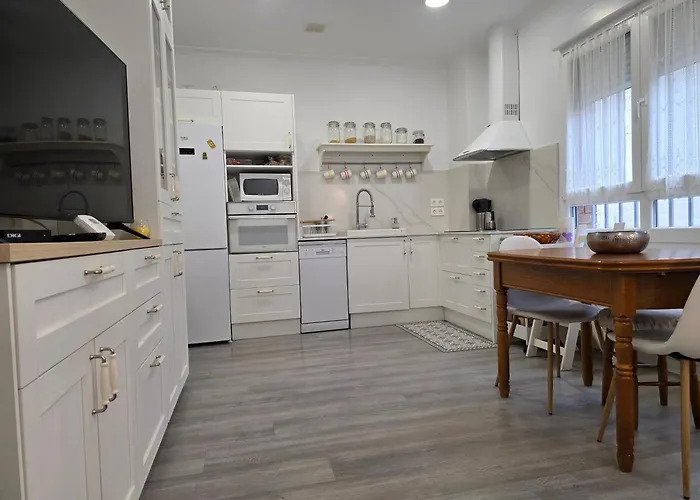 - ❓Is there a kitchen available at 1A165 By R2R Moderno Y Coqueto Apartamento Con Garaje for guest use?Yes, 1A165 By R2R Moderno Y Coqueto Apartamento Con Garaje is furnished with an equipped kitchen and offers a fridge, an oven, and glassware as well.